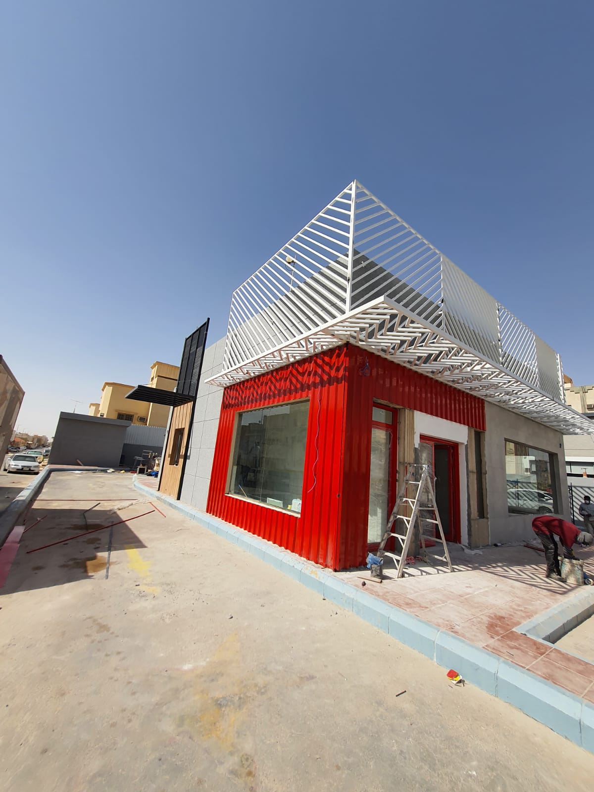 Chorome design & build team team was responsible of exterior works including architectural and elevation works, from aluminum cladding, windows and doors, HPL words, logo fixing, lighting work. As we executed all interior works such as gypsum, wall claddings, kitchen equipment and furniture suppling in addition to tiling, painting, etc.