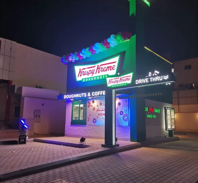 Krispy Kreme – Al Yarmouk Constructing Kiosks for Krispy Kreme in Riyadh, with all its supplements from concrete and steel works in to establishing electrical and mechanical structures, followed by Aluminum cladding, tiling, ceiling works, glass fixtures, building counters, kitchen and food storage installation, LC