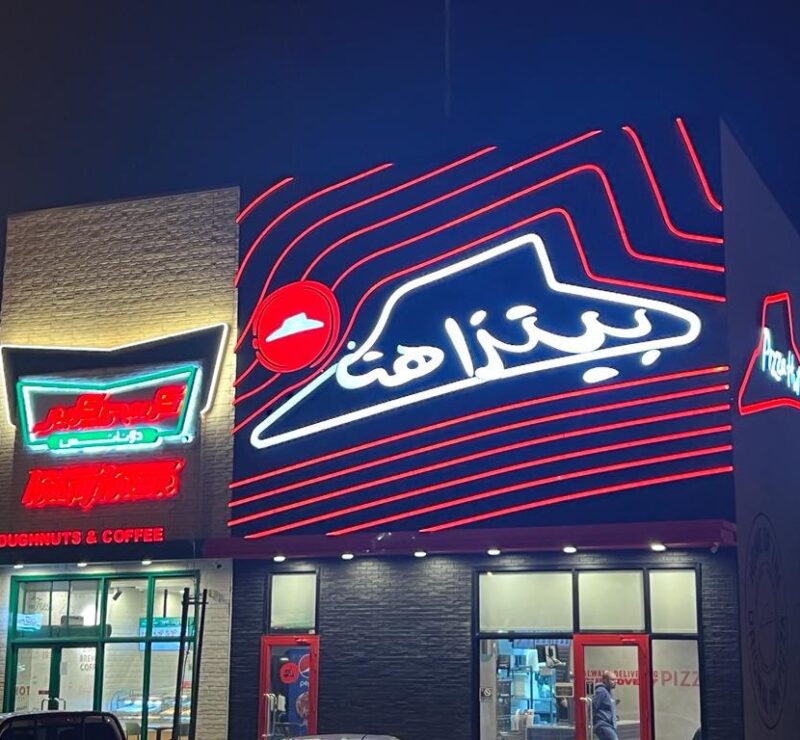 Pizza Hut – Riyadh At Pizza Hut Project our team was responsible of all exterior works applying all architectural and elevation works, from aluminum cladding, windows and doors, HPL words, logo fixing, lighting work. As we executed all interior works and furniture suppling.